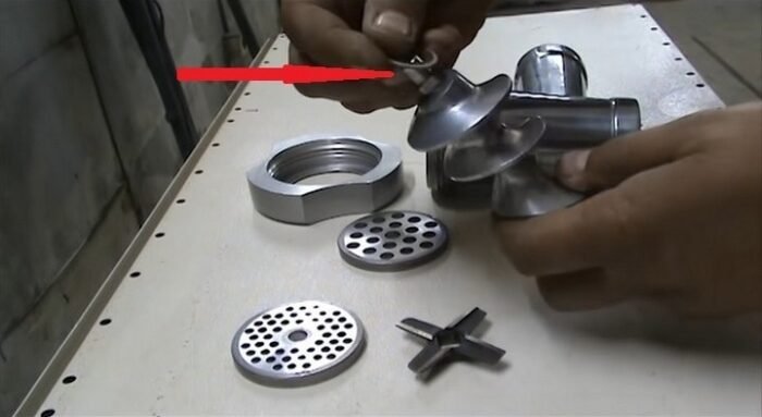 - Неправильная сборка мясорубки. Даже небольшой перекос решётки или ножа приводит к тому, что устройство работает с перебоями.